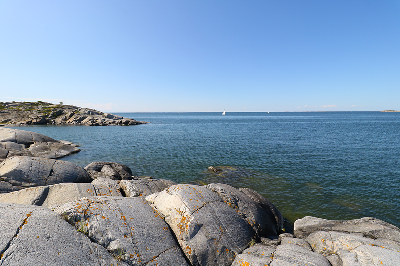 Vy mot havet. Utanför Lilla Nassa i sydostligt väderstreck så är det öppet hav direkt. Drar man sig lite mer mot norr så kommer man ut mot Gillögaskärgården samt längre ut Svenska Högarna. Blidösundsbolaget brukar köra två turer med Sjöbris i juni varje år just ut till Svenska Högarna med dess Heidenstamfyr.
