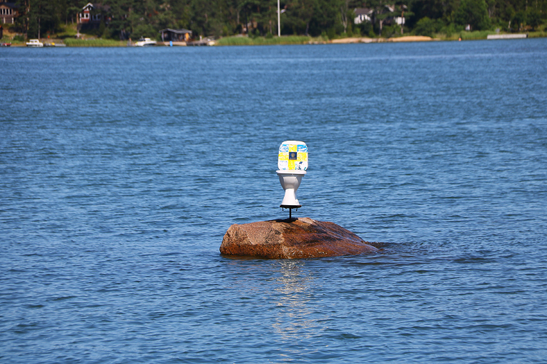 En mycket speciell grundutmärkning vid Östra Lagnö. Vi valde att inte köra på det och därmed ”spolade” vi det grundet. 😉