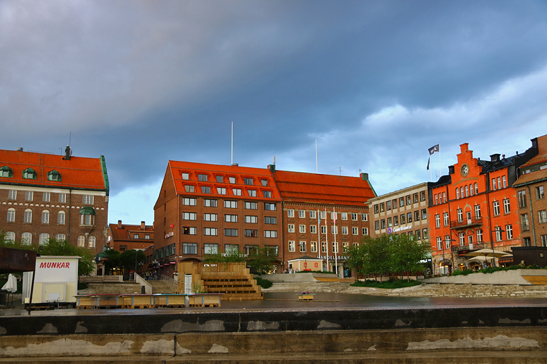 Efter att den värsta skuren avtagit så kunde man fortsätta mot Stortorget. Lite dramatiska moln i kvällsljus låg ännu kvar.
