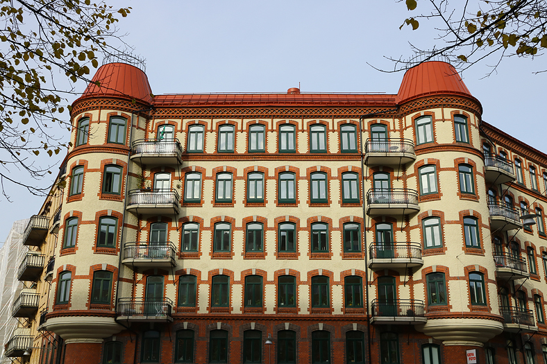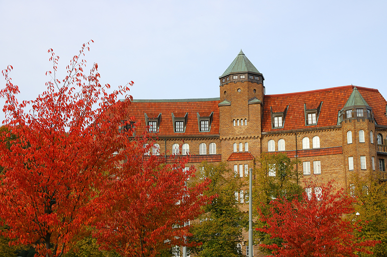 Fler rika färger vid Linnéplatsen där en entré till det stora parkområdet Slottsskogen finns.