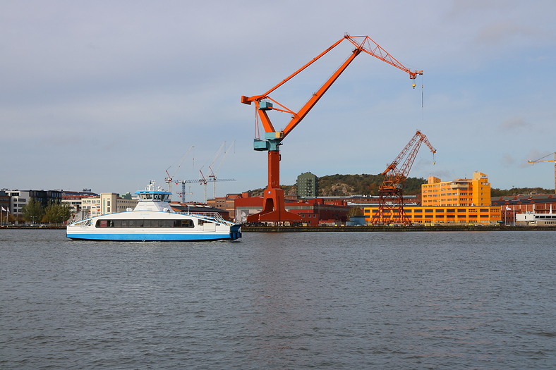 Tog mig ner till Göta älv och såg en av färjorna på Älvsnabbaren komma i riktning mot Stenpiren.