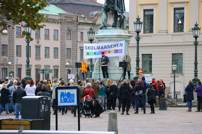 En demonstration om skolan hölls på Gustav Adolfs torg. Själv demonstrerade min mage av hunger vid detta tillfälle, så jag tog mig bort till ett annat torg, Kungstorget, för att intaga en god måltid på en restaurang med samma namn som torget.