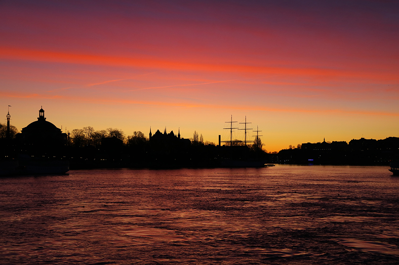 Över Strömmen var vyn inte desto mindre färgstark. Eric Ericsonhallen syns till vänster i bild, är ju tidigare Skeppsholmskyrkan som miste sin religiösa profil för snart 20 år sedan. Sedan 2009 bär den byggnaden namnet efter den beryktade körledaren Eric Ericson.