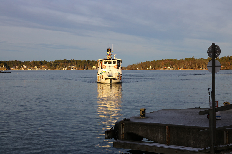 Jag kom att göra ett båtbyte vid Lillsved på Värmdö. Mitt tilltänkta resmål var Norra Svartsö brygga, och då krävdes alltså båtbyte. Men ska i ärlighetens namn nämna att det också berodde på båten Riddarfjärden, som inte vanligtvis är i trafik i dessa delar av skärgården. Nu fick den emellertid ersätta den ordinarie båten Solöga som under hösten och fram till strax efter nyår varit på varv.