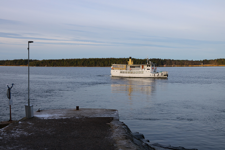 Åker man 08:30 ifrån Stockholm så möter man de flesta av de inkommande färjorna från Finland, Estland och Lettland. Den här gången ”missade” jag att se Estlandsfärjan, men ett av de två fartyg inkommande från Helsingfors fångades i den tidiga förmiddagssolen.