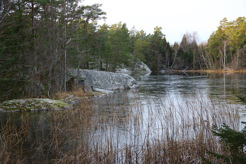 Storträsket, en av insjöarna på Svartsö, hade klar tendens till isläggning. Bara det att den tendensen avtog ganska fort med det fortsatta mildväder som denna vinter än så länge bjudit på till största del.