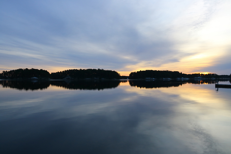 Jag vandrade ut till Söderboudds brygga därifrån jag kom att ta båten, m/s Sandhamn, hem. Utanför bryggan så låg vattnet blankt och fint, det var ju en väldigt lugn dag vädermässigt.
