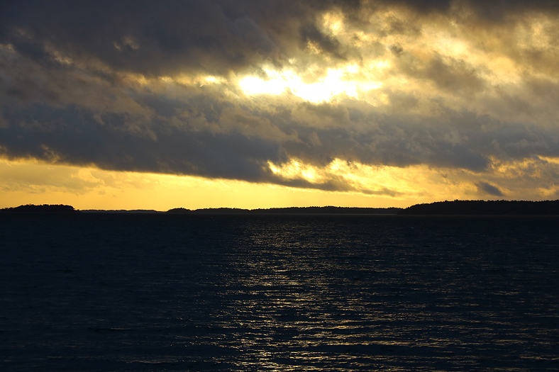 Solen bröt sig genom molnen över Nämdöfjärden.
