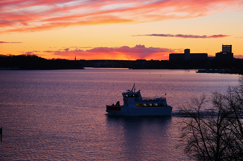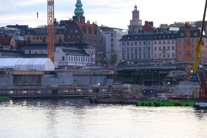 Apropå broar så har man demonterat gångbron vid den så kallade Getingmidjan. Under tiden det fixas till en ny bro så kommer man kunna åka gratisbåt mellan Klara Mälarstrand och Riddarholmen, inte under hela dygnet dock. Trafiken körs av båtarna Hättan och Gurli (reserv). På bilden är det Hättan som ska anlöpa Riddarholmen i det läckra ljuset.