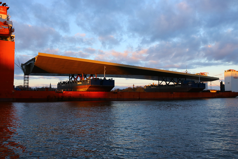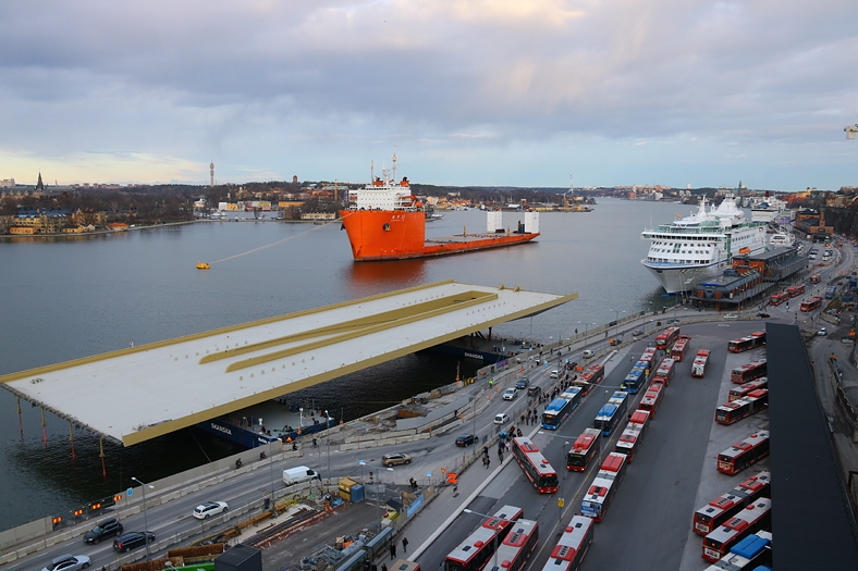 Men den 11 mars så hade specialfraktfartyget Zhen Hua 33 anlänt med Slussenbron, efter en lång seglats från Kina med en del förseningar varav man likväl kunde kalla bron för ”Golden Late”. 😉