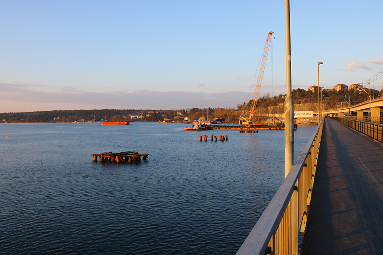 Den lilla Lidingöbron, den så kallade Gamla Lidingöbron, har jag utnyttjat den sista tiden till och från hemmet på Lidingö, nu på senare tid främst med cykel. Gamla Lidingöbron ska ersättas av en ny som byggs ett antal meter norr om den gamla nitade stålbron från 1925. Fördelen i att inte åka buss är att man också kan dokumentera byggets fortlöpning.