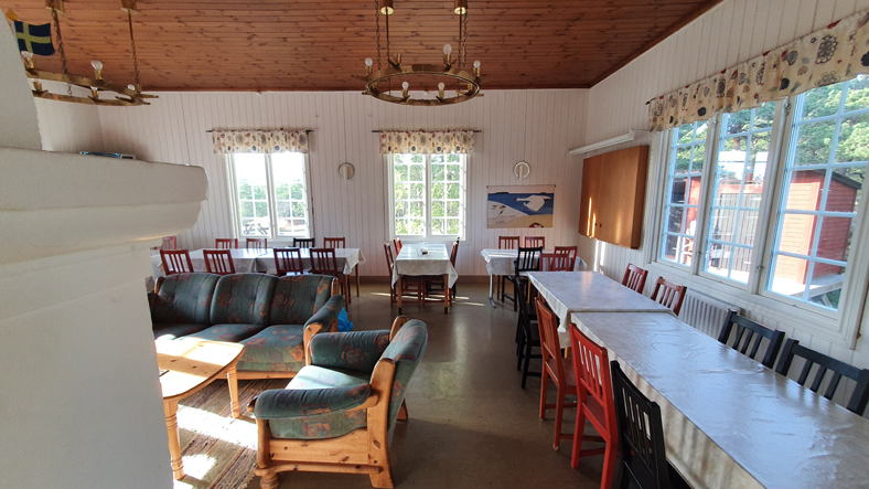 Som nämnts ovan så köpte vi med oss mat ifrån ICA Norbergs livs på Dalarö. Frukosten köpte vi med oss delar ifrån kiosken/caféet/receptionen nere vid bryggan på Fjärdlång, där fick vi kryssa i en lista på vilka produkter och hur mycket av produkterna vi ville ha. Våra måltider förtärde vi sedan i detta rum i Thielska villan, och första kvällen så åt vi fiskburgare. Lite sjötema är ju aldrig fel i skärgården. 😉