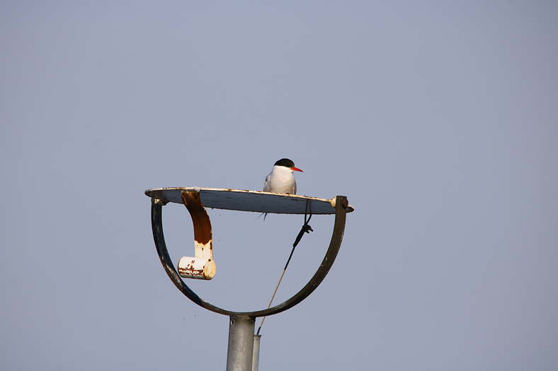 Observerande och cool tärna på bryggans semafor.