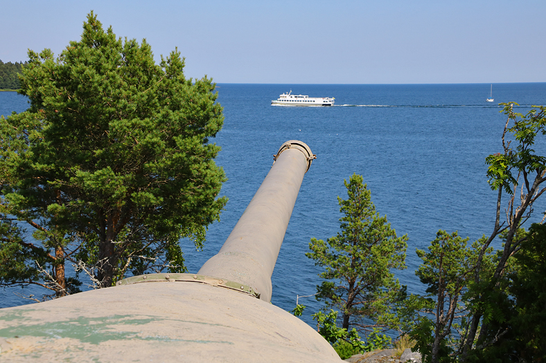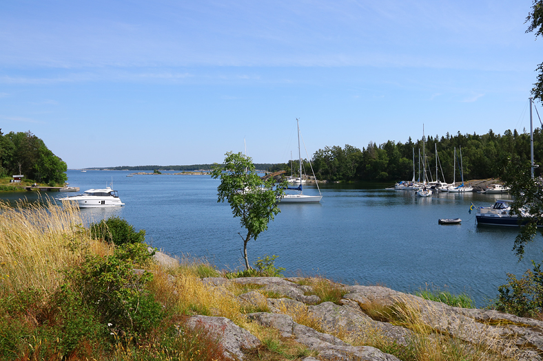 Jag och Kim gick bort till Kanonberget på öns östra del. Längs vägen passerade vi bland annat Österhamn, den populära naturhamnen.