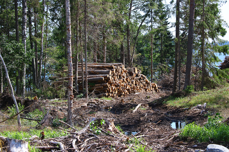 Nog är det lite timmer som ska fraktas från ön, runt 50 000 träd ska ha fallit…