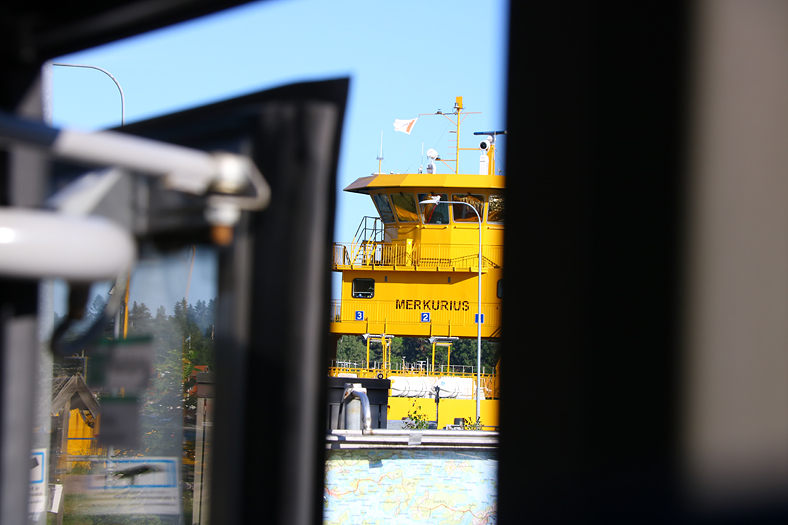 Färden gick in till Norrtälje med Rex, därefter en rask promenad till busstationen där vi gick på linje 632 för en färd ut till Yxlan. Och för att komma till Yxlan så krävs en tur med vägfärja ifrån Furusund, och i det här fallet med Merkurius som tidigare hette Vaxholmen och under lång tid gick i trafik på Vaxholm – Rindö.
