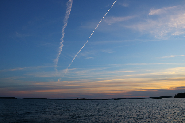 Lite vind var det allt denna kväll. Men ändå skönt att sitta en stund längs gångbordet på övre däck.