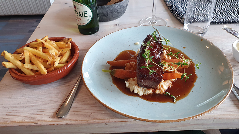 En trerättersmiddag blev det med älgfilé som varmrätt. Mycket gott och trevligt.