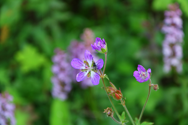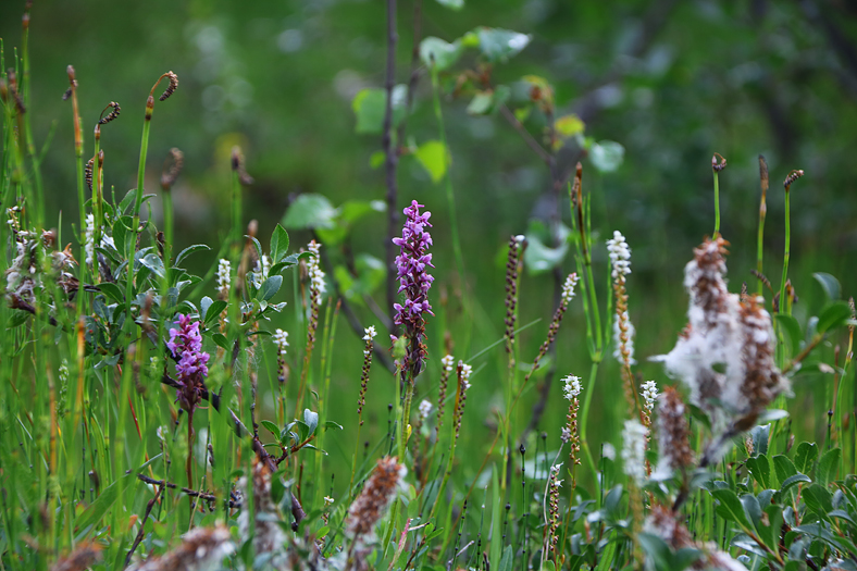 Midsommarblomster med orkidéer i bakgrunden.