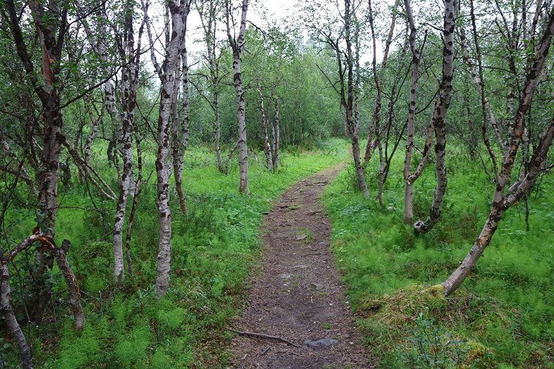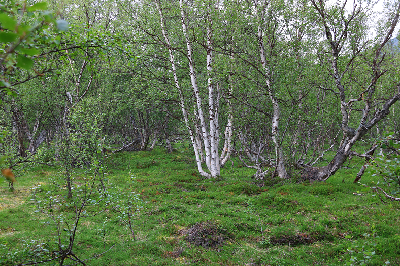 Vacker lövskogsmiljö, och den dominerande trädsorten är fjällbjörken.