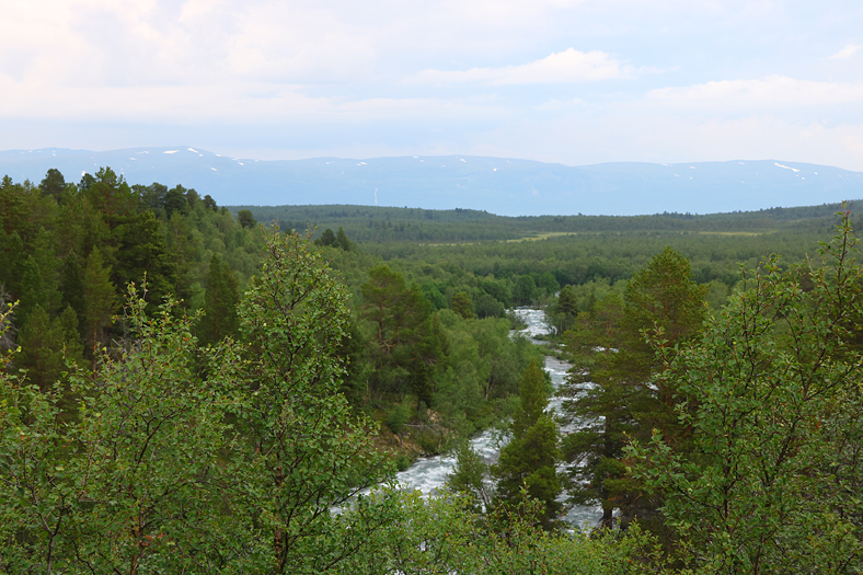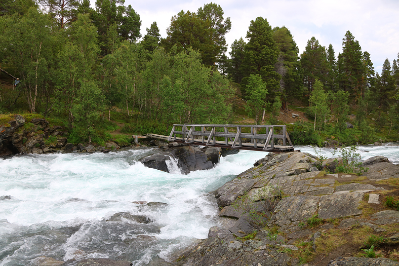 Framme vid Kårsafallen där det var drag. 😉 En gångbro tog mig över vattendraget och upp på en höjd där spår av renar syntes.