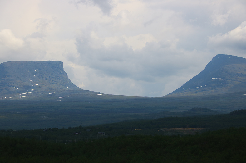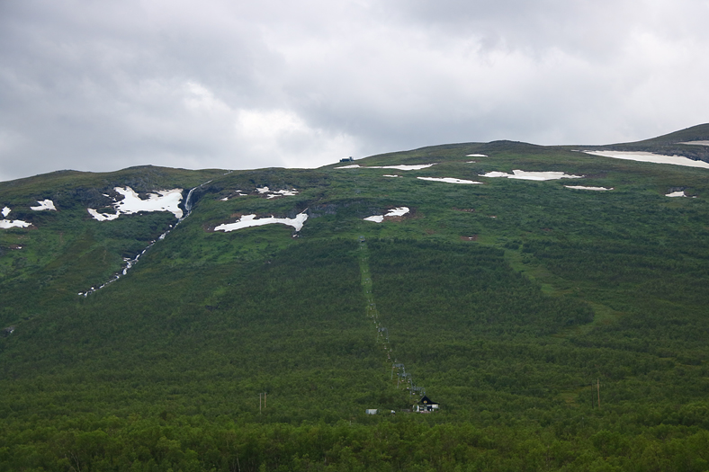 Innan jag gick in för dagen, så passade jag på att blicka mot morgondagens plats för utforskning – fjället Nuolja. I mitten av bilden syns linbanan och till vänster syns bäcken Ridonjira.