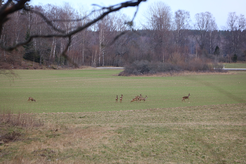 Mitt emot Fågelsta gick det in enskild väg, efter ett par hundra meter så vek av till naturstigen.Ute på närliggande fält höll sig ett gäng rådjur i farten, och fart blev det på dem när jag kom att passera relativt nära. 😉 Det här är områden med mycket vilt.