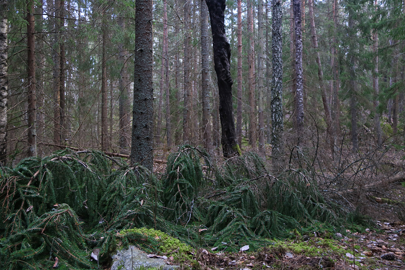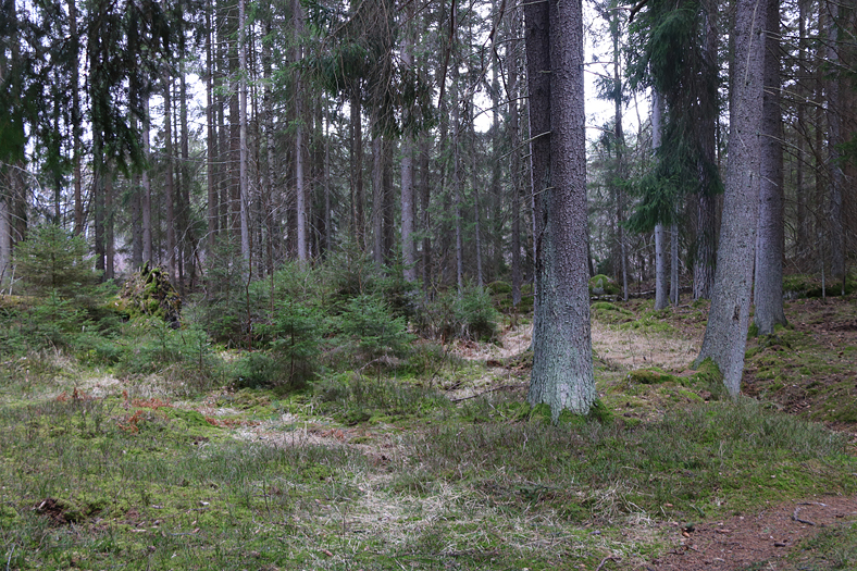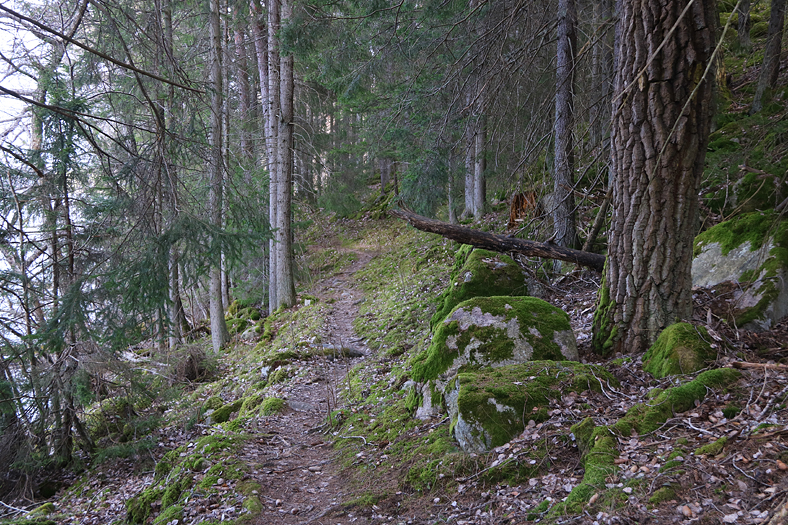 Ljuset kom in i skogen, det var en varierande skogsstig med ömsom djup granskog som lite glesare hällmarksskog högt beläget. Ljuset kom i alla fall in och lyste upp mossan.