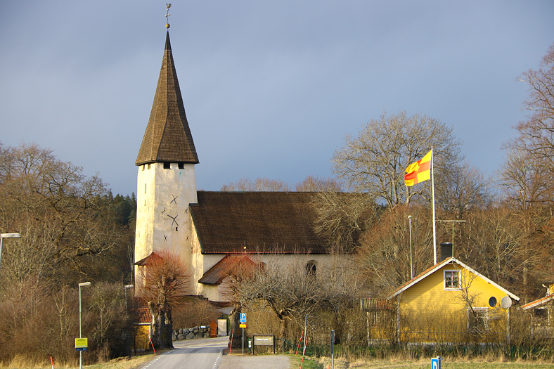 Salems kyrka är från 1100-talet och ligger intill Bornsjön på en udde. Från hållplatsen Salems kyrka så åkte jag med 708 tillbaka till Hallunda, längs ”Gamla Södertäljevägen”. Den stora Södertäljevägen idag är ju E4 som brusar inte särskilt långt från Salems kyrka, ja man ser ju kyrkan tydligt från motorvägen.