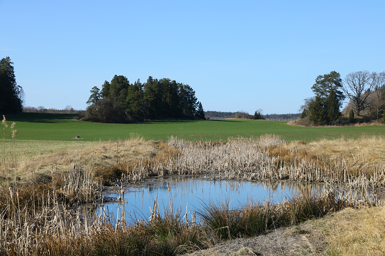 Förutom den nya rastplatsen med röjda strandängar nedanför, så har även en våtmark anlagts i närheten, vilken ska se till att det näringsrika vattnet som kommer från åkermarken ”silas” för att sedan via strandängarna rinna ut betydligt renare i Hansviken. Östersjön har ju stora problem med övergödning genom att för mycket kväve och fosfor kommit ut i vattnet, från jordbruk, transport och industri bl a, vilket negativt påverkar växt och djurlivet genom dess följder med algblomning, bottendöd och syrebrist. För Hansvikens del så ska denna våtmark gynna det rika rovfiskbestånd som finns i viken, med bland annat gädda och abborre.