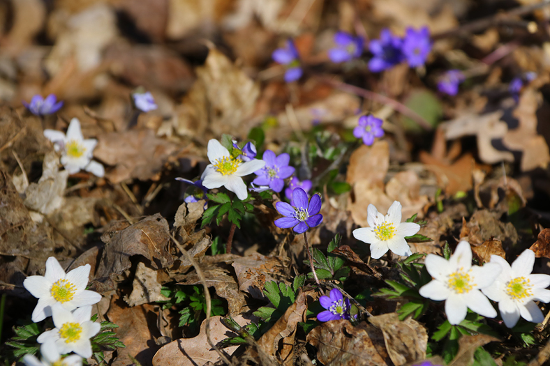 Vitsippor och blåsippor har varit rätt samspelta i år. Annars brukar de flesta blåsipporna ha blommat över när vitsipporna är i gång.