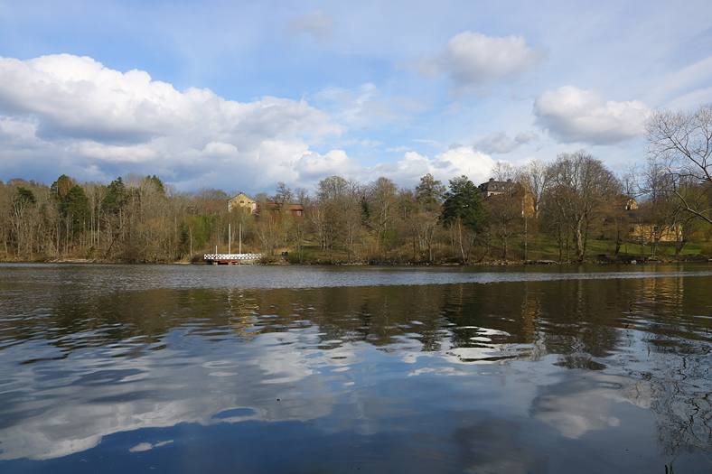 När man har gått nerför slottsparken så kan man gå en runda längs vattnet, med ett antal fint belägna rastplatser, och sedan också ett gammalt tegelbruk. Ja resterna efter detta tegelbruk som namngivit området med bland annat en gammal arbetarbostad samt en skidbacke. Skidbacken ligger bara några hundra meter från Görväln slott och vandrar man upp till dess topp så nås härliga vyer. Jag valde dock inte att göra det denna gång, utan fortsatte längs vattnet mot Görvälnsbadet i första hand.