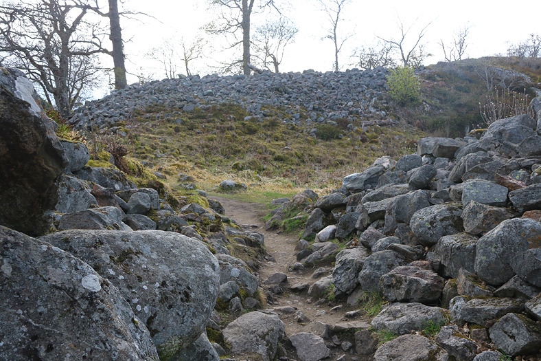 En mäktig fornborg med många stenar i dess murar. Dateringar av hittat material från borgen, som gjordes i början av millenniet, tyder på att borgen är ca 1500 år gammal.