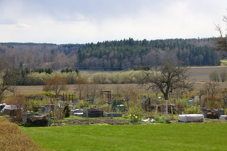 Odlingslotter intill Görvälns slott. Följde alltså Upplandsledens orangea markeringar hit, och kom också att följa dessa under hela min vandring denna dag.