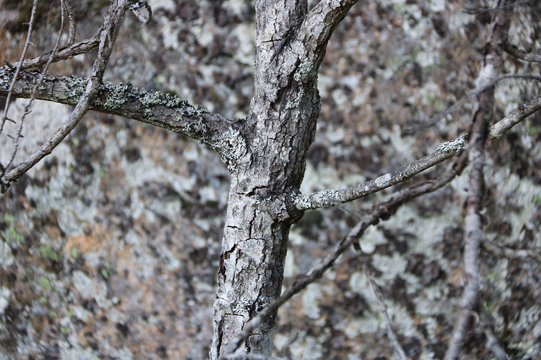 Ner mot Hummelmora hage gick en bit längs lite steniga branter, varav koncentrationen fick vara uppe. Men ett par bilder hanns med att få iväg med kameran också. 😉 Här nästan lite kamoflerat träd.