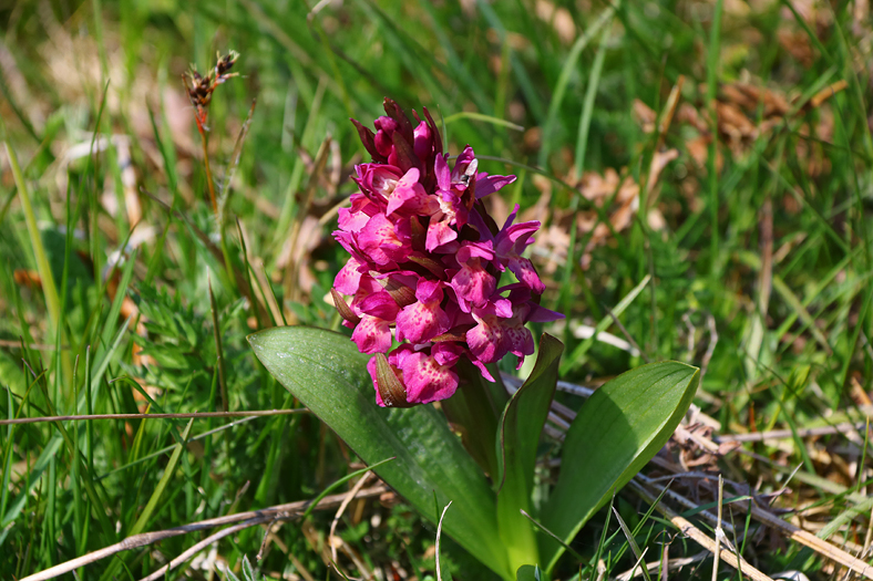 Om något lila syntes i bilden med gullvivorna så var det denna växt som syntes. I Sandemar finns ett rätt gott bestånd av Adam och Eva-orkidén. Ett år var dock det nästan ingen orkidé alls, då syntes också spåren efter vildsvinen tydligt i markerna. Synen av uppbökad mark är inte den roligaste, även om vildsvin är ett intressant djur – med gott kött inte minst. 😉