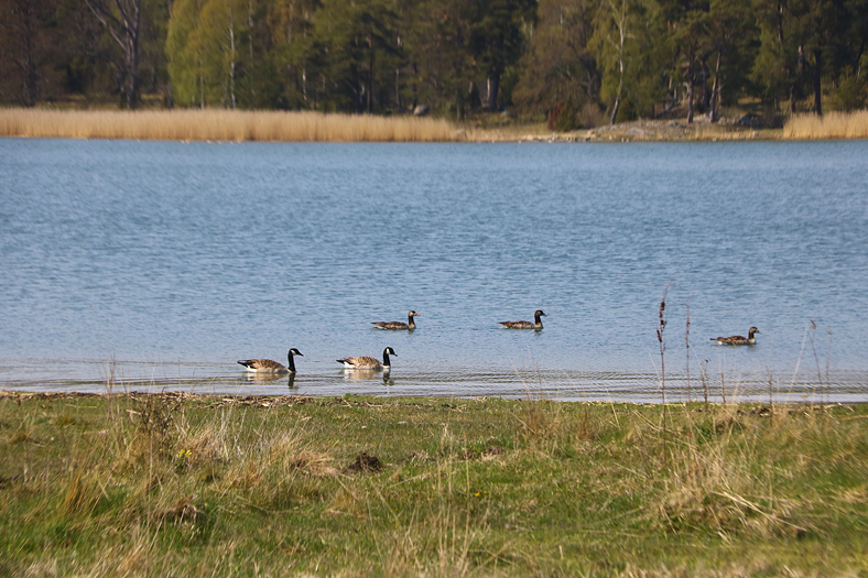 Vet inte om Kanada och Säd gås bra ihop. 😉 Kanadagäss i par och en trio sädgäss.