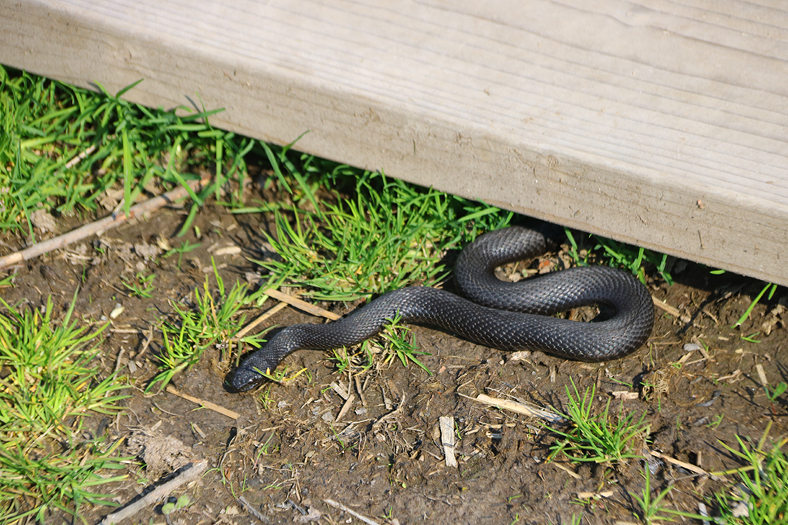 Där högg det till vid spången, en huggorm uppenbarade sig. Den helsvarta varianten. Fick syn på den på väg mot busshållplatsen.
