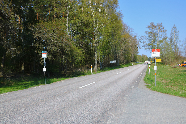 SL har designat nytt för busshållplatsers skyltar, den nya varianten, till vänster i bild, kunde vid hållplats Svärdsnäsviken skådas för linje 839 och 869 i riktning från Dalarö. Den äldre modellen, där jag steg på bussen, mot Dalarö.