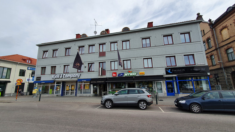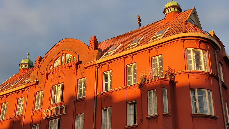 Statt i kvällsljus. Stadshotellet kan man ju också benämna det, för denna byggnad som kom till 1914. En av stadens äldre byggnader alltså, mycket i staden är annars från senare hälften av 1900-talet.