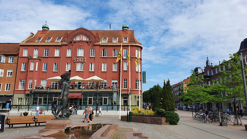 Promenaden från Hässleholms station till Hotell Statt var inte lång, bara ett par minuters strövande med rullväskan. Ett av de pampigare husen i staden skulle jag ta in på.