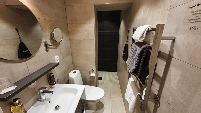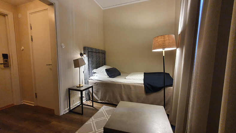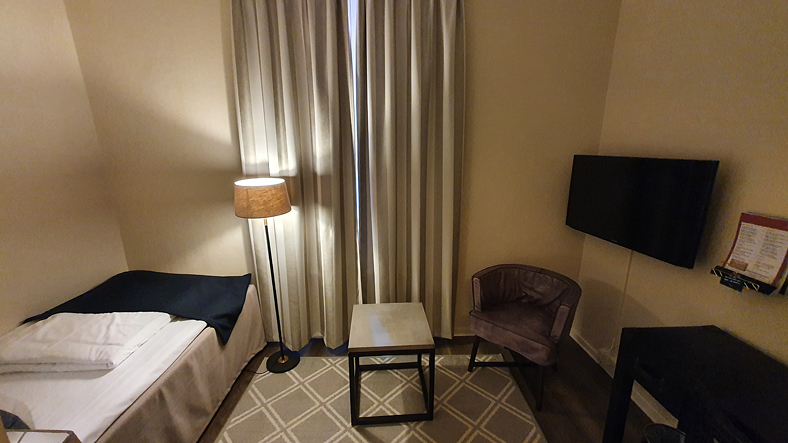 Ett mysigt rum med en stilfull WC. Standarden kändes ganska direkt högre här än i Lidköping, trots att själva priset var närmare en tusenlapp billigare för tre nätter. Visserligen ingen direkt hänförande utsikt mot en innergård, men utsikten var inte så graciös heller från Hotell Rådhuset. 😉 Nej här på Statt trivdes jag riktigt bra under tre nätter.