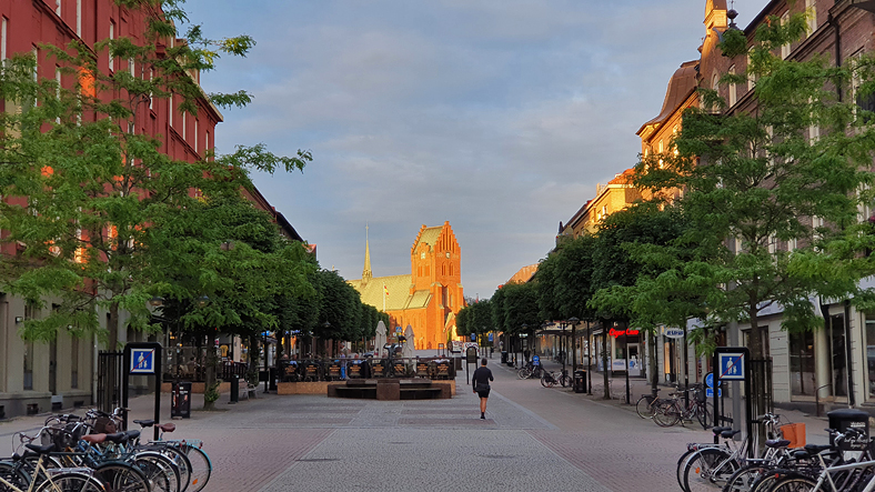 Stadens gågata med kyrkan centralt i det vackra ljuset. Det jag hann se av Hässleholm såg jag första kvällen, i övrigt hade jag inte så mycket mer tid för stadens omgivningar. Syftet var inte i första hand att se Hässleholm, utan detta kom att bli en utgångspunkt för vidare utfärder i den vackra skånska regionen.