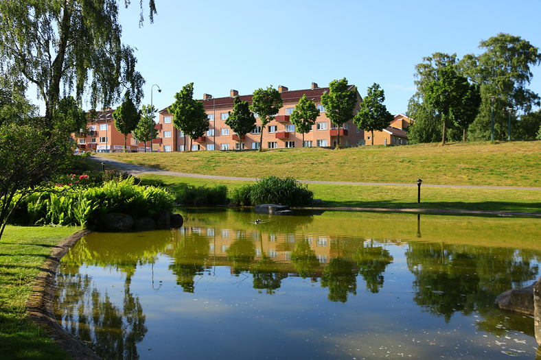 Jag tog en liten rundvandring i Hässleholm, en stad med närmare 20 000 invånare. Dess uppkomst har med järnvägen att göra, då det blev en knutpunkt under 1860-talet. Centrala staden har en gågata – Första avenyn – och sedan efter kyrkan kommer man fram till en mysig hembygdspark. Till den bortre delen av den parken har jag kommit här.