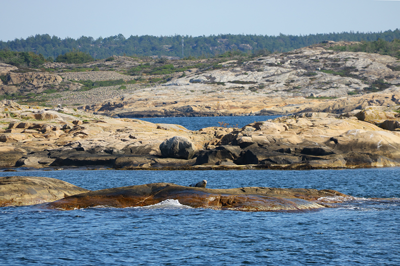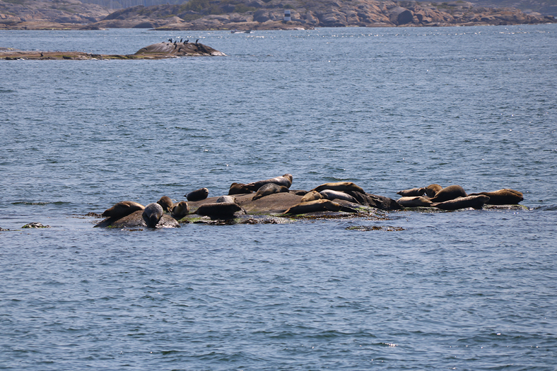 På väg ut till Vinga, genom Göteborgs skärgårds ganska snabbt kommande utskärgårdsmiljöer, fanns det goda möjligheter att se sälar.