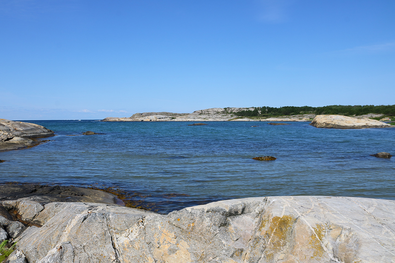 Efter en glass på ett café så tog vi också ett snabbt dopp i denna vik på västra Nordkoster. Brännmaneter drog in från havet, så det blev just ett snabbt dopp som sagt. Området kring Koster är ju väldigt rikt ur ett marinbiologiskt perspektiv, och ett större närliggande område omfattas av Kosterhavets nationalpark.