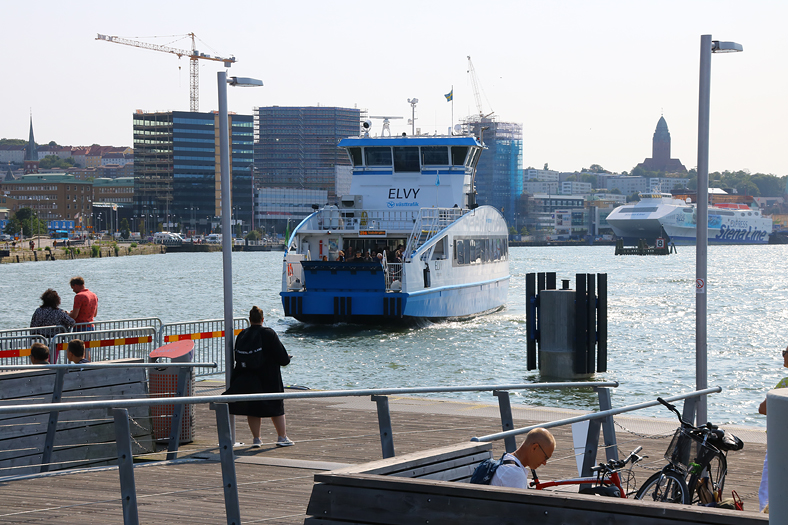 Det byggs för fullt även i Göteborg, och byggs ut gör ju även infrastrukturen med nya broar, ny järnvägstunnel och annan kollektivtrafik. Under 2010-talet har nya pendelfärjor på Göta älv levererats. När vi checkat in på vårt hotell, centralt beläget 5 minuters promenad från station, så gick vi till Stenpiren och tog en sväng med en av dessa färjor – Elvy. Elvy är den senaste levererade pendelfärjan på linje Älvsnabbaren. Älvsnabbaren kör mellan Stenpiren vid Inom Vallgraven och Eriksberg på Hisingen. Linjen kom till för att förstärka förbindelsen till/från bland annat universitetsområdet vid Eriksberg, och därmed avlasta den längre Älvsnabben-linjen som går mellan Lilla Bommen och Klippan.