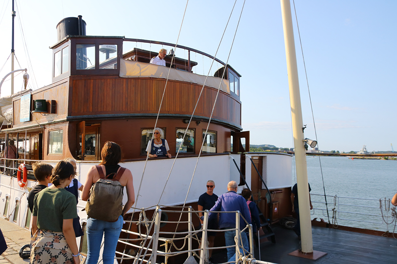 18:30 var avgångtid från Stenpiren med det stolta bohuslänska ångfartyget Bohuslän, även om hemmakajen är i Västergötland. 😉 Det är en imponerande ideella insatser som görs för detta fartyg som verkligen är en stolthet för Göteborg och landskapet Bohuslän. Under turen, eller ska vi säga ”expedition”, guidade kapten Harald Treutiger.