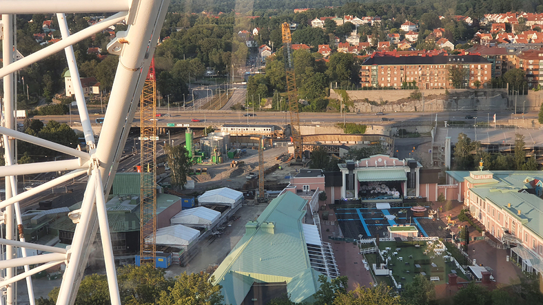 Ja där har vi alltså allsångsscenen där det sätts färg måndagar sommartid. Vi åkte en sväng med Lisebergshjulet med mäktiga vyer över staden.