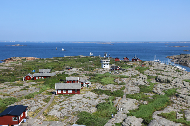 Från Valfjäll med vy mot Nordkoster med dess två högt belägna fyrtorn.